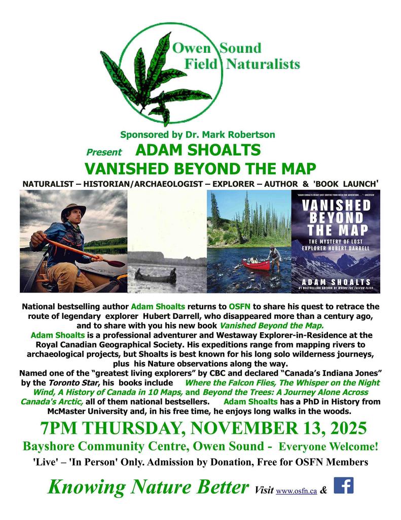 Both famed for their long solo journeys ranging from Alaska to Hudson Bay, a century later, archaeologist and naturalist Adam Shoalts traces Darrell’s lost pathways to solve one of exploration history’s enduring cold cases—the mystery of Hubert Darrell. Sponsored by Dr. Mark Robertson.