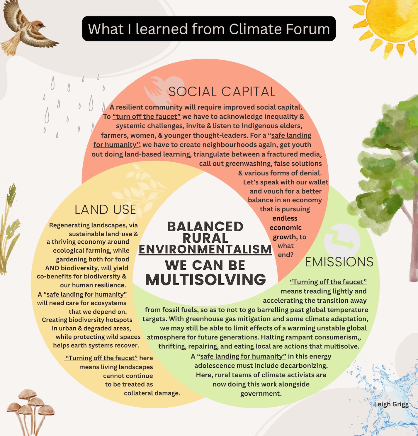 Climate Forum was a monthly online talk during COVID lockdowns, alongside local panelists about environmental issues that affect us here in Grey-Bruce. Be sure to visit our YouTube playlist for previous online talks (edited for time) for a wealth of knowledge. TEASER: Have you ever heard of Multisolving?
