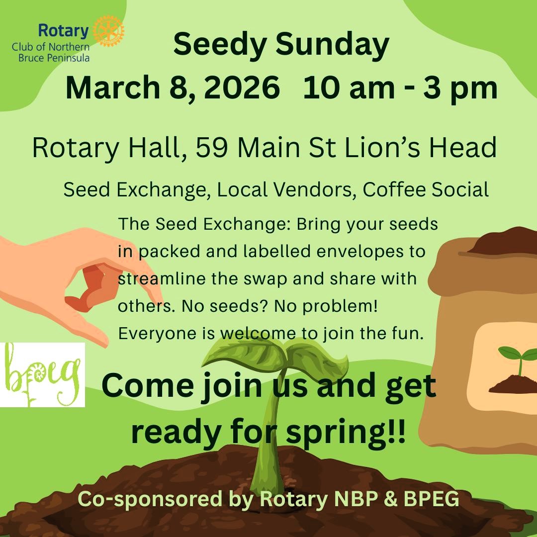 BPEG is co-sponsoring a Seedy Sunday event at the Rotay Hall, 10 a.m. to 3 p.m. Seed exchange with several seed growers attending. See poster attached.